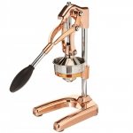 Profesjonalny wyciskacz do owoców cytrusowych został wyposażony w dźwigniowy mechanizm wyciskania. Z użyciem niewielkiej siły wyciśniemy świeży sok bezpośrednio do szklanki. Wyciskacz został zaprojektowany w taki sposób, aby idealnie wycisnąć połówkę owocu. Rama i nóżki urządzenia wykonane zostały ze stopu metali, co zapewnia mu stabilność w trakcie pracy. Dodatkowo znajdujące się w podstawie cztery przyssawki zwiększają wygodę pracy. Wyciskacz łatwo utrzymać w czystości - elementy mające kontakt z owocami są wyjmowane i można je umyć. Wymiary: 18 x 22 cm, wysokość 43 cm.